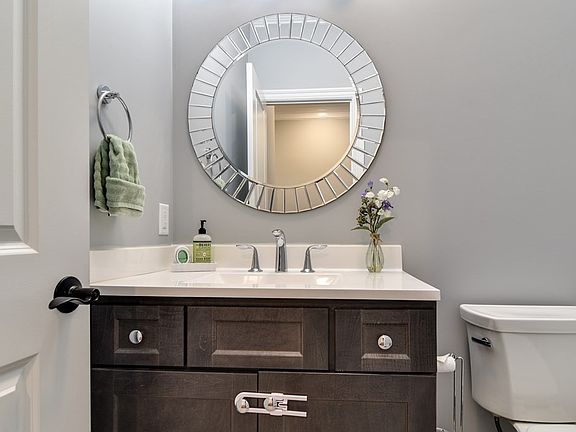 Welcome Home to this beautiful, custom finished, meticulously maintained, end unit on highly desirable Bellwood Circle! The first floor boasts a huge 2 car garage, custom finishes throughout the half bath, living room and kitchen. The kitchen is highlighted by its upgraded appliances, stainless steel finishes and quartz countertops. Head upstairs to your two massive bedrooms, laundry room and guest full bath. The primary bedroom includes a huge walk in closet, and a custom full bath with a quartz vanity tops. Your finished basement is the perfect entertainment spot for your family and guests! Also, featuring it's one full bath, offers a flexible space perfect for entertainment and extended guests to stay while secluded from the rest of the house! This end unit gets a ton of natural light in this well-thought-out floor plan, and keeps great privacy in the back yard. Welcome home to 147 Bellwood, sure to impress you throughout every detail of the property!