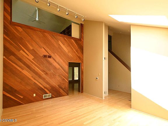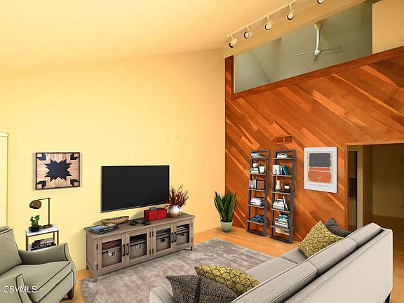- Description: carpet, ceiling fan, wood shelving, overlooks LR