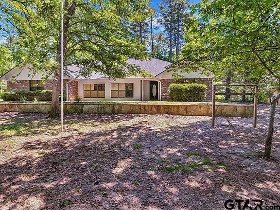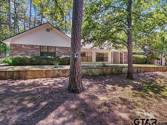 Beautiful brick home in highly sought after gated community of Holly Lake Ranch. Located on the West side where most of the amenities are located! This large home is on a small cul-de-sac across from the street from second largest lake in HLR and you can actually glimpse the lake from the front sunroom of the house. The kitchen, dining, and living room has the open concept floor plan that most people are looking for. This makes this house wonderful entertaining big families or guests. The master bedroom is separate from the other bedrooms and has an ensuite bathroom with a big bathtub, separate shower and large walk-in closet. The kitchen has a nice sized pantry and breakfast bar. It also has lots of cabinets and counter space for the cook and newer appliances, sink and faucet. The huge living room has vaulted ceiling, built in bookcase and a wood burning fireplace. The other 2 bedrooms are split from master and are a nice size with big closets and share a full bathroom. There are 2 sunrooms. One sunroom is off the living room which faces the backyard, and the other sunroom is right off the front entry facing the lake. Really big side entry garage, with lots of cabinets and a storage closet, holds 2 cars easily and also has a separate garage door for your golf cart. The back yard has a nice fenced in area for a garden and a big storage shed that can easily be made into a workshop. A couple other nice things about this house is that it has a 40-year roof and all-season windows. Holly Lake Ranch has something for everyone. Amenities such as swimming pools, golf course, dog park, pickle ball courts, basketball, tennis courts, community rooms, picnic areas and much more. There are lots of activity groups too! If you are looking for a great house with wonderful neighbors in a great community then don't waste time. Come look at this house.