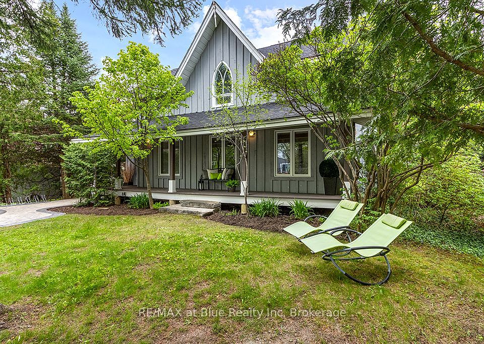GORGEOUS WINTER CHALET - This stunning 4 bedroom country style chalet with covered front porch is in a PRIME location. Just steps away from Blue Mountain Resort's ski lifts and Blue Mountain Village, Ontario's most popular four season resort. Modern open concept with fully equipped gourmet kitchen including outdoor gas BBQ to make gourmet meals. Enjoy the panoramic views and relax on the elevated deck or enjoy the large open backyard and green space. Spend time with friends in the 8 person outdoor hot tub, or unwind in the spa like main bathroom with Jacuzzi tub, heated floors, and separate shower. Kids can hang out downstairs playing Foosball, pinball, darts or watching their favorite shows while parents cook up a tasty meal in the well-appointed kitchen upstairs under the skylights . Loaded with features including; new roof in 2018, new stamped concrete driveway and back patio in 2019, oversized Super Fan in living room, stainless steel appliances, French door bottom freezer fridge, new six burner gas/electric stove (2021) in island, garburator, ceiling mounted vent hood, wine fridge, quartz stone counter tops, new flooring in basement, jetted bathtub and heated floors in bathrooms, alarm system and keypad entry. This warm country chalet is just waiting for the next family to enjoy Blue Mountain living!