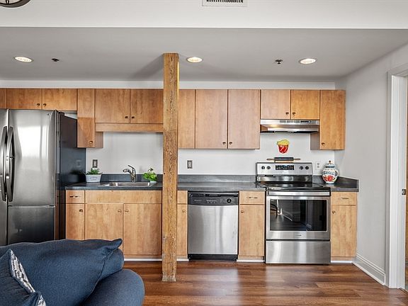 Welcome to the Lofts at SoCo, where modern comfort meets historic charm. This beautifully designed 2-bedroom, 2 full-bathroom top floor unit offers a spacious open floor plan that’s perfect for both everyday living and entertaining. Step inside and be greeted by soaring ceilings, exposed beams, and striking brick walls that add a warm, rustic touch to this contemporary space. The natural light pours in, creating an airy and inviting atmosphere throughout. Both generously sized bedrooms feature walk-in closets, providing ample storage and a sense of luxury. The unit also includes all appliances and the living room TV — making your move-in simple and stress-free.Enjoy the convenience of being just 2 minutes from the commuter rail, offering quick and easy access to the city. Don’t miss this opportunity to live in one of Brockton’s most desirable locations!