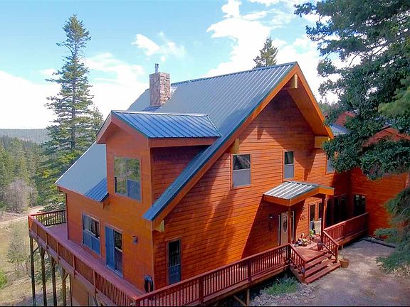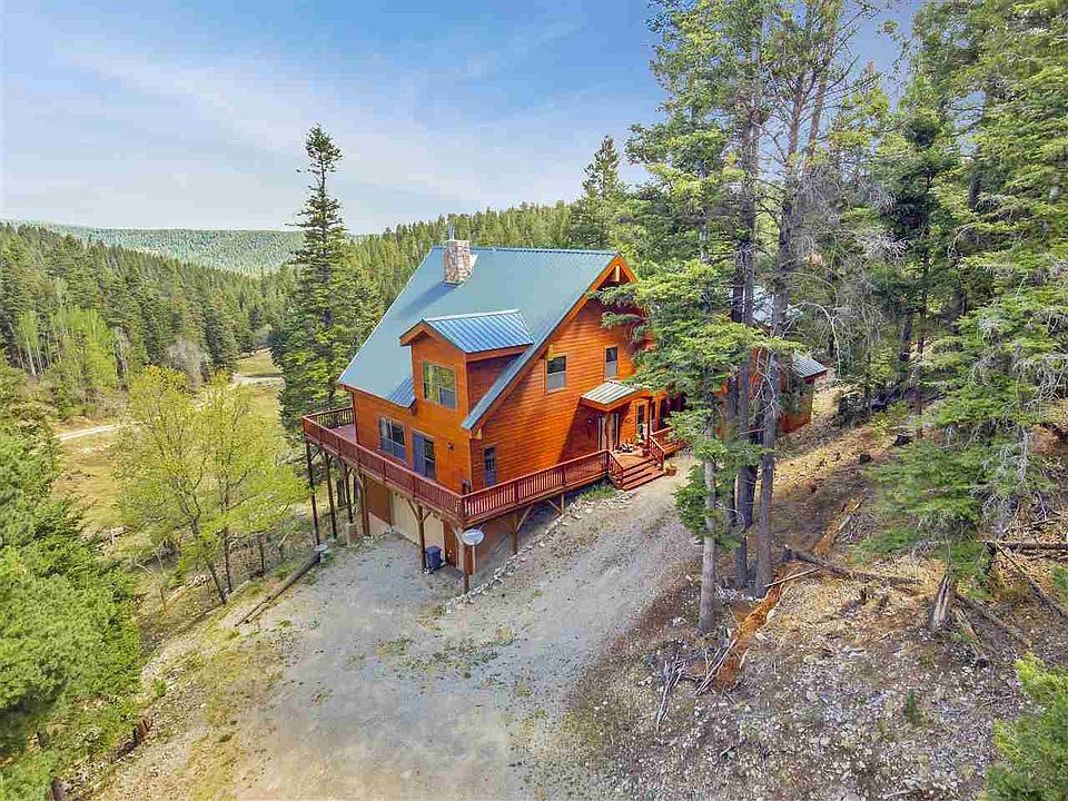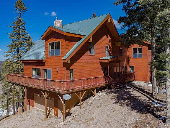 Escape to this luxurious home that is secluded on just under 28 acres with incredible views of Sierra Blanca! The acreage is meadow with forest and the home sits up top and built to take in the mountains & large skies from every room and deck. This is truly grand living with 30' wood vaulted ceiling, massive wood beams, 28' stone fireplace chimney that is the centerpiece between the game room & living areas! Each bedroom has a private bath and there is a Caretaker or In-Law quarters on the basement level.