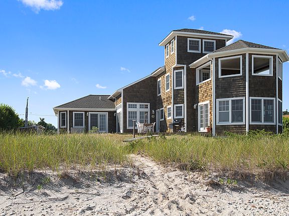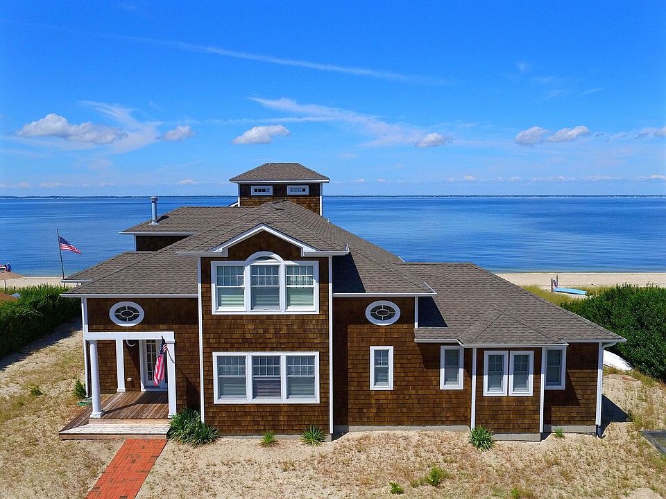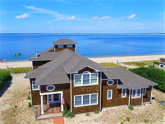 Enjoy your very own beautiful Peconic Sandy Bay Beachfront house along with a Cold Spring Point Bay dock directly across the street on a quiet magical peninsula. This home comes complete with cathedral ceilings, two large en suite master bedrooms, two en suite guest bedrooms, two full and two half bathrooms, an outdoor shower, an oversized kitchen with granite counter tops, a living room with a grand fireplace, and a second floor terrace with breathtaking vistas of the south shore of Long Island's North Fork and the beautiful Sebonack, National and Shinnecock Hills Golf Courses. Relax at the beach, or enjoy boating, swimming, golfing, tennis, basketball, paddleball right outside your door.