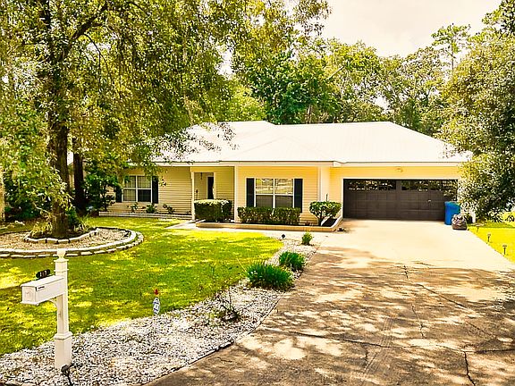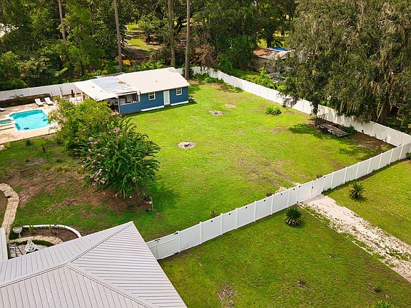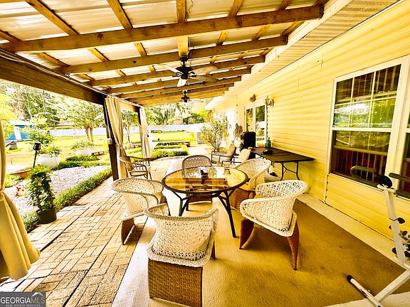 Welcome to 147 & 153 Colonial Way-a beautifully maintained smart-home retreat in Helveston Oaks on ~0.88 acres (two combined parcels, both on septic) near the Old Cypress Mill / Golden Isles Pkwy corridor and a short drive to Downtown Brunswick, Mary Ross Waterfront Park, St. Simons Island, Jekyll Island, the Golden Isles beaches, and 6 miles to Blythe Island. One-level 3BR/2BA (~1,378 SF; 2000) blends easy living and indoor-outdoor flow: open living/dining with abundant natural light and a stone-top kitchen (stainless appliances, tile backsplash, island/breakfast bar). Flooring: wood-look terracotta ceramic tile in the living room and bedrooms-the look of hardwood with tile's durability, water resistance, and low maintenance-plus stone tile in mudroom, laundry, and baths. The owner's suite features a tiled walk-in shower & dual vanity; secondary bedrooms provide generous closets. Smart/mechanical: Nest thermostat, additional home-automation configurations, a security system (service/setup by buyer), and a traditional tank water heater. An attached ~572-SF two-car garage with attic storage adds everyday convenience. Resort-style outdoors (fall/holiday friendly): heated inground pool + jacuzzi (newer system), outdoor speaker system for game-day audio, multiple entertaining zones, vinyl privacy fencing, and a large citrus tree. Cook at the outdoor kitchen (stainless grill, gas cooktop, mini-fridge, built-ins). The 1632 pool/guest-house structure offers a covered deck bar and patio; interior is currently unfinished-ready for you to personalize (studio, gym, office-buyer to verify finishing/permitting). A separate gazebo hangout with pool table & lounge furniture (conveys) and a gas fire pit sets the stage for football watch parties, crisp fall evenings, winter fire-pit nights, and holiday gatherings. On the second parcel, a white-rock driveway leads to the back yard.