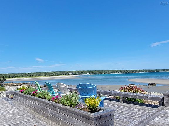 Architecturally Designed Beachfront Home. This truly exceptional 4 bedroom, 4.5 bath coastal retreat was thoughtfully crafted by renowned architect James Wright. The home is nestled on 2.1 acres with 185 feet of pristine white sand beachfront. The inviting open concept features luxury finishes, soaring cathedral ceilings, a propane beach rock stone fireplace, an upstairs loft, a bright sunroom with spectacular ocean views, and radiant in-floor heating for year round comfort. The sunroom captures 180 degree views of the ocean, giving you a sense of being at the helm of a ship that opens onto a multi-level deck through two sets of patio doors. The newly renovated kitchen is equipped with a large island, pantry, and quartz countertops, perfect for entertaining or creating casual family meals. The primary suite with ocean views includes an ensuite bathroom with a luxurious soaker tub and walk-in closet. The two additional bedrooms on the main level also feature ocean views and private ensuite bathrooms. The lower level offers a grand entertainment room complete with a built-in sound system. The fourth bedroom and spa inspired bathroom with sauna on the lower level provide a private and comfortable space for accommodating visiting family and guests. There is also a cedar wine storage room and plenty of additional storage space. The wired two-car garage provides storage for vehicles and beach equipment. For peace of mind and convenience, the home is equipped with an auto-start generator. The direct beachfront, and access to Broad River and the Trestle Trail make this property ideal for enjoying a variety of recreational activities. It is located a short drive from several restaurants, including those at the Quarterdeck Resort and White Point Beach Resort and Golf Club, 10 minutes from the historic town of Liverpool, and 1.5 hours from Halifax.