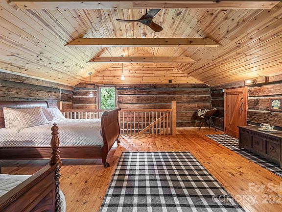 This is one of the most rare and unique offerings you will find in the heart of WNC's Blue Ridge mountains and only 20 minutes from Asheville! This 5,000+ square-foot estate spans 35 gorgeous wooded and grassy acres and masterfully unites the heritage of an original 2-story 1800s log cabin with the elegance of a custom timberframe post-and-beam home. Relocated and preserved in the 1950s, the updated two-story log cabin anchors today's residence with its hand-hewn authenticity, while the modern great room—modeled after a Hudson River Valley design—soars with oak beams, walls of glass, and exquisite attention to detail.