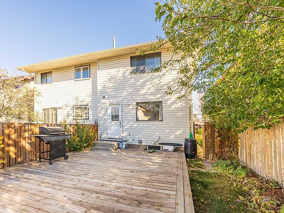 This charming two-storey half duplex offers incredible value and an excellent opportunity for buyers looking to add their own personal touch. The main floor features a bright front living room with large picture windows that allow an abundance of natural light. The adjacent dining area leads to the rear kitchen, which provides access to the spacious back deck, perfect for outdoor entertaining. A convenient two-piece bathroom completes the main level. Upstairs, there are two generous bedrooms and a beautifully renovated full bathroom. The partly finished basement provides additional usable space, ideal for a home gym, office, or recreation area. Enjoy the outdoors in the fully fenced yard with a large deck and extra off-street parking. Major updates include a newer roof and hot water tank, offering peace of mind for years to come. Located on a quiet street in the desirable community of Beddington, close to parks, schools, shopping, and transit, this home represents the best value in the area. Do not miss your opportunity to make it your own.