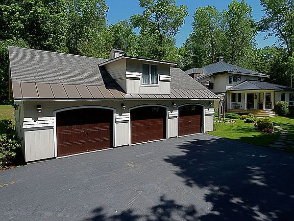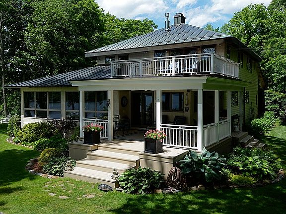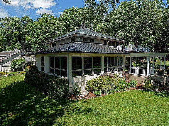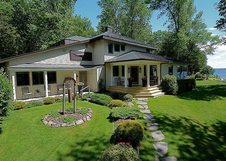Luxury and serenity find you at this lakeside oasis. Standing in the backyard, overlooking your private cove and the Adirondack Mountains, you will forget how close you are to Burlington and the airport. This lovely home, positioned at the end of the road, sits on 12 private acres and has 1200 feet of lakeshore. This shoreline is uniquely accessible by both a drivable path and a staircase that leads directly from your gardens to your beach and dock. The mature, landscaped gardens have over 70 hostas, and include a whimsical sculpture garden, treehouse, enclosed gazebo, and many more surprises. In addition, for the interested hobbyist, 30 of our maple trees are tapped for maple sugaring and are accompanied by a small sugar house. Walls of windows provide over 180 degrees of lake views and allow an abundance of natural light to flood the open floor plan, which is perfect for both formal and casual entertaining. This architecturally designed home with a copper roof is in pristine condition and features three bedrooms and 3 ½ quality bathrooms. It also has a newly renovated chef's kitchen, lots of built-ins, and a security system. The lawn has an underground sprinkler system. Every day in every season brings unique, sweeping panoramic views that serve as an ideal backdrop for lounging in the house, the yard, or happy hours on one of the many decks. There is plenty of storage, and this property has a heated 13 x 10 office or workshop with a private entrance in the three-car carriage style detached garage. One of the many features you will enjoy is the flexible floor plan. Situated adjacent to the front entry is an additional entrance that leads to a separate living area that can be incorporated into daily living or used as a first-floor master suite. In addition, when this space is closed off, it serves as a luxury Airbnb, which now generates $20,000 to $30,000 annually. This annex features a bedroom, a second family room, and a private bath. Please visit Woodsbayhidaway.com for more details about the Air BnB and the property in general. This sale encompasses two properties. 147 East Shore Road (2.2 acres) and the adjoining unbuildable land at 63 Hochelaga Road (9.2 acres). PLEASE NOTE the Zestimate does NOT include 63 Hochelaga Road. We look forward to showing you our property.