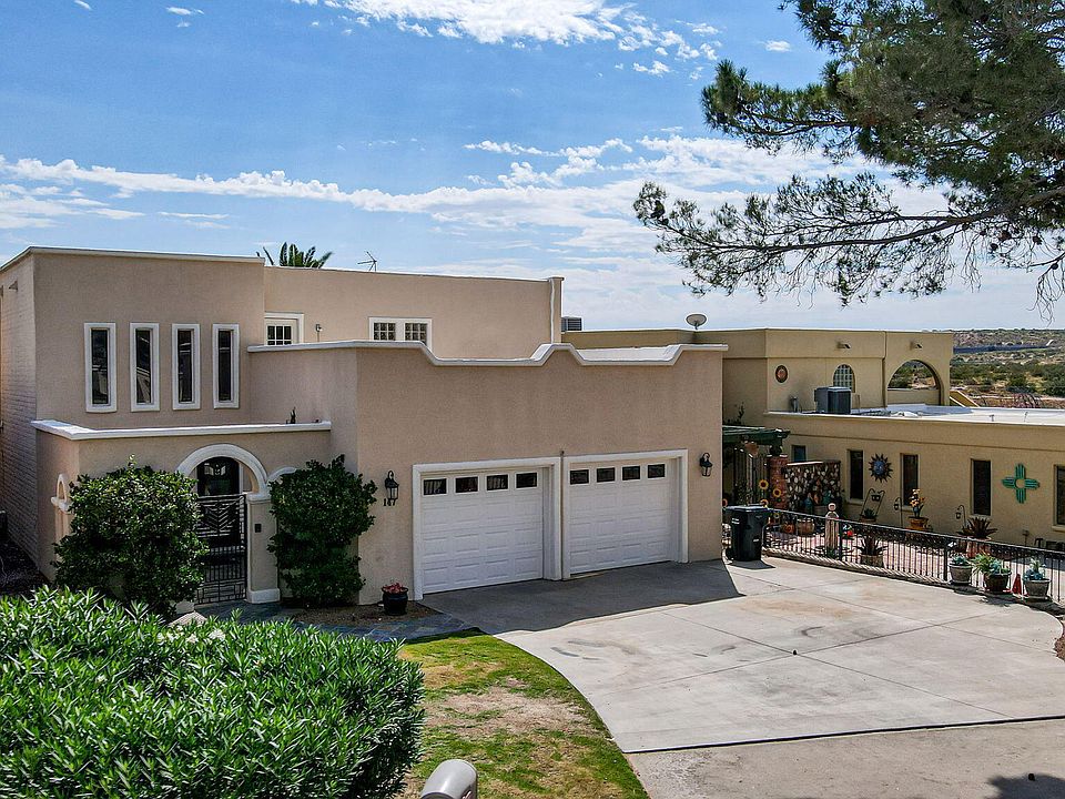 This 3 large bedroom (all with private baths) plus multi-functional rooms underwent massive remodeling in 2000. Featuring upstairs and downstairs master bedrooms, enhancing multi-generational living. Other amenities include open floor plan, large kitchen with extensive custom oak cabinets, 2 story entry way with custom waterfall fountain, gated courtyard, wet bar, fireplace, powder room, built in BBQ, RV electrical hook up, covered deck and patio to enjoy the views of El Paso lights, Mt. Cristo Rey, the Franklin mountains, and the desert. Viewing this house is an experience.