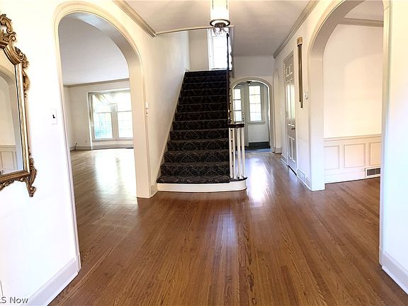 Stately home located on Youngstown’s North Side, loaded with craftsmanship, quality and character throughout. From the stone exterior with slate roof, enter the foyer to a wide staircase and gleaming original hardwood floors. The large and bright living room features a gas fireplace with marble surround, crown molding; the first floor also has a large formal dining room with built-in cabinets and wainscoting. The updated eat-in kitchen includes white cabinetry and granite countertops plus an original refinished built-in hutch with glass front top cabinets, professional hand painted botanical art decorates the walls. The second story holds a huge primary suite with fireplace, dressing alcove and full bath, plus 2 additional large bedrooms with built-in cabinets, cedar lined closets and full bath, under carpet there is hardwood floors. The third floor has a bedroom with full bath. The basement is partially finished with pine paneling and stone fireplace, laundry area and workbench. Enjoy