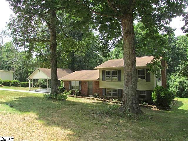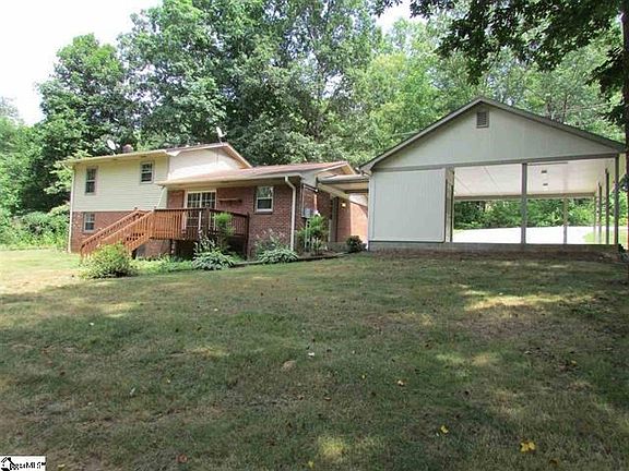 Enjoy life in the country! Rare find in this 3 bedroom, 2 bath home with a bonus room and over-sized 2 car carport sitting on 6 acres in Dacusville. This split level home features a kitchen with a pantry that is open to the dining area, and the den. Upstairs are the 3 bedrooms and 2 full baths. On the lower level is the large recreation room, lots of storage, and the laundry room. This is a beautiful piece of property with a large storage building with electricity, shed, and a chicken coop. The property features wooded and cleared areas. Creek is on the property also. Priced at appraised value!