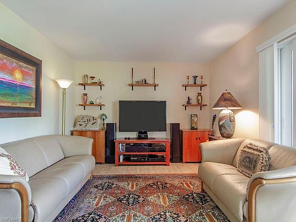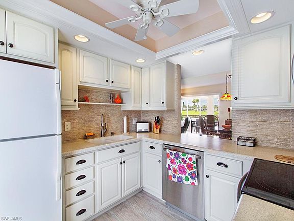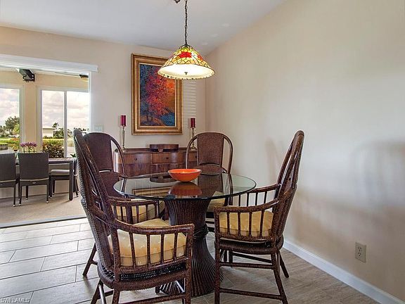 C.16567 Location! Location,! Location! Stunning water and golf course views abundant with bird life and panoramic sunsets. High impact glass windows w/screens enclose the Lanai and extend the living area for entertaining or relaxing. Large master bedroom with on suite.Second bedroom and bath offer privacy for guests. Fully remodeled kitchen, bathrooms,flooring. HVAC and hot water heater new in 2016 Electrical panel and all plumbing stacks replaced. Brick patio off lanai. Walk to resort style amenities including Clubhouse, hard and grass tennis courts, 9 pools, bocce, shuffle board, Pro-Shop and 19th Hole restaurant. Pickleball courts being built. Only 3 miles to 10 miles of Gulf beaches and Old Naples. Private Country Club membership with 2 newly reconstructed 18-hole bundled golf courses.