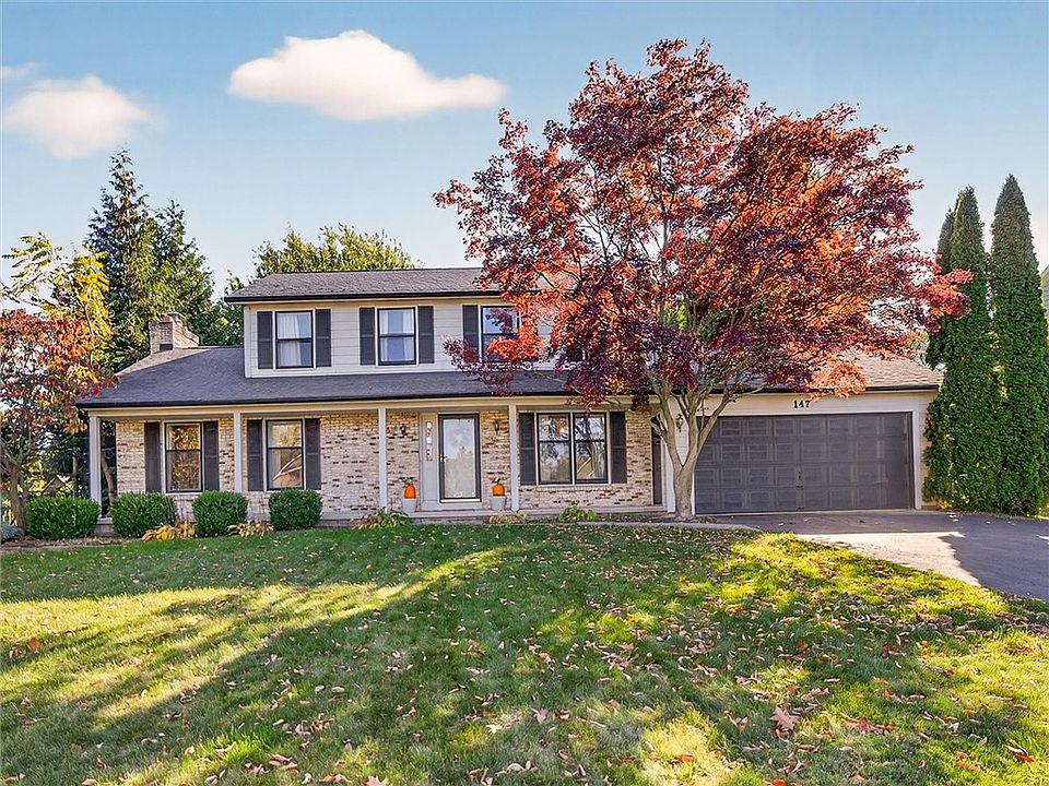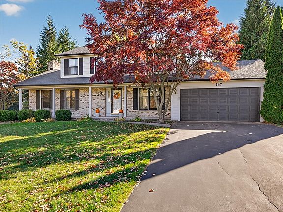 HOME FOR THE HOLIDAYS! This Center entrance colonial is ready for the new owners! The open front porch has classic curb appeal. Upon entering is a large foyer area that leads to the Great Room complete with Wood burning Fireplace, large windows that allow for natural lighting, & classic hardwood floors. The updated kitchen has stainless steel appliances, a pantry, & a dinette area for casual meals. The formal dining room is ready to host your traditional favorites & special gatherings. The kitchen sliders lead to the backyard complete with a patio, & lots of greenspace surrounded with tree-lined borders that provide for a park-like setting. On the 2nd floor you will find: a spacious Primary bedroom suite with its own bathroom & walk-in closet, 2 additional bedrooms (Bdrm # 2 is good-sized) and a full bathroom. The full basement provides for all your storage needs. Nicely located South of Lake Ontario, convenient to the parkway, and a short distance to Braddocks Bay Park. No Delay, Show Today!