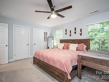 High ceilingsFront or back deckCrown moldingNew carpet and paintUpper level primary bedroomNewer light fixturesDual closets