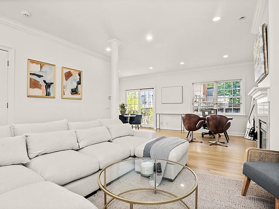 Set in one of Greenwich's convenient locations just minutes to the train, shops, beach, and parks this exceptional 2-bedroom, 2.5-bath townhome is a premier unit in the complex. Offering unmatched privacy and the largest yard, it feels more like a private home than a townhome. The open-concept main level is perfect for everyday living and entertaining, featuring hardwood floors, a living room with fireplace, dining area, breakfast nook, and sliding doors to a private patio. The kitchen is outfitted with sleek stainless steel appliances and natural stone countertops. Upstairs, the spacious primary suite includes a luxurious bath with soaking tub and separate shower, while the guest bedroom enjoys its own en-suite bath. A charming wrap-around front porch complete the picture! PETS ALLOWED, call listing agent for more information. Photos shown are of a similar unit.