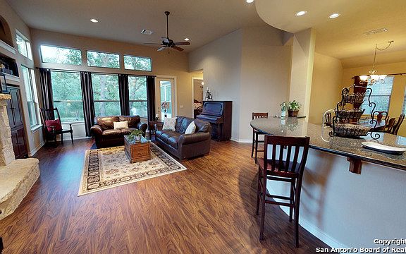 Tucked away from the growth and progress of the surrounding area, this well-loved home on a cul-de-sac road, in desirable and gated Lantana Ridge convenient to 281 offers a must see lifestyle. Tall ceilings and large rooms give this home an abundant, spacious feel. 3/2/2, media room/flex room, study, single story living, x-large garage with built-ins. New paint and carpet throughout 6/18. 1+ acre lot with dry creek bed and zero visibility of neighbors to the bac