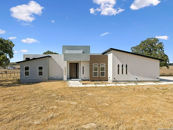 Discover the epitome of luxury living in the charming town of La Vernia, Texas, nestled within the highly sought-after Las Palomas Country Club Estate subdivision. This stunning home is a masterpiece of modern design, featuring three spacious bedrooms, two and a half baths, and a dedicated office, making it perfect for families and professionals alike. Step inside to experience a world of custom details that set this home apart. From the moment you enter, you'll be captivated by the high ceilings and elegant fireplace, creating an inviting atmosphere for relaxation and gatherings. The striking custom doors and windows enhance the modern aesthetic while allowing natural light to flood the space. The remarkable walk-in butler's pantry is a chef's dream, perfect for entertaining and culinary enthusiasts. Each bedroom is thoughtfully designed, including a beautiful and expansive walk-in closet that provides ample storage space. Enjoy the convenience of ceiling fans throughout, complemented by high-end built-in appliances that elevate your cooking experience. The master bath is a true retreat, featuring a luxurious rain shower and a separate soaking tub, adorned with exquisite accents and finishes that reflect the highest standards of craftsmanship. Set on a generous 0.82-acre lot, this property offers plenty of outdoor space for recreation or relaxation. While the large covered back patio boasts stunning views, it is the custom features throughout the home-such as modern accents, top-of-the-line finishes, and meticulous attention to detail-that truly define its luxurious allure. Don't miss the opportunity to make this exceptional home your own!