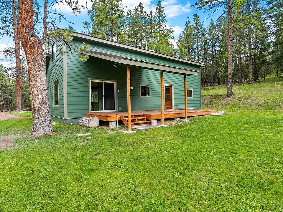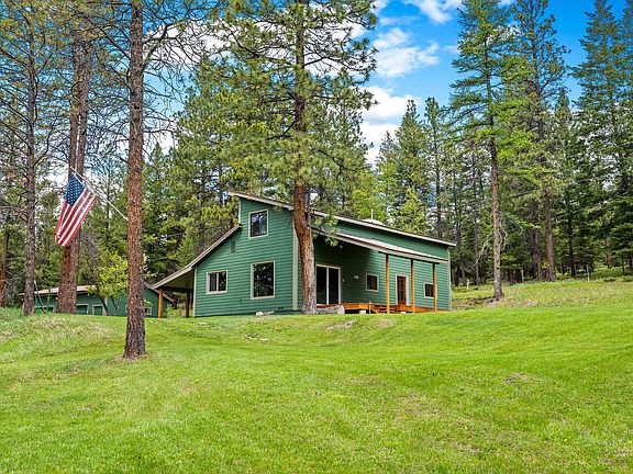 Set on 9.64 acres of peaceful privacy off Haywire Gulch, this remodeled 4-bedroom, 2-bathroom home offers a true Montana lifestyle. Updates include brand-new wood flooring, fresh window trim, stainless steel kitchen appliances, new cupboards with granite countertops, and efficient baseboard heaters. The main floor features two bedrooms, while the two upstairs bedrooms showcase original tongue-and-groove cedar ceilings for added character. Enjoy cozy evenings by the wood stove or relax outside on the covered front porch and back deck overlooking the property. A detached 2-car garage, multiple storage sheds, and plenty of space for animals make this an ideal setting for both comfort and function. With no covenants, the opportunities here are as open as the Montana sky.