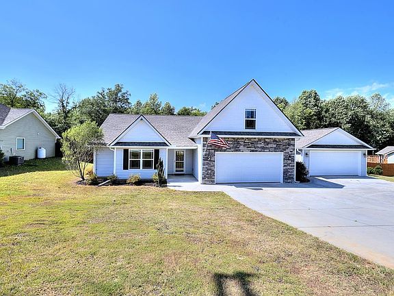 Discover the potential of this open-concept craftsman home built in 2018. Property to be sold as-is. What a great opportunity to add your own personal touches to this 2,000+ sq.ft. one-story ranch with additional room over the garage. Need space for cars, boat, hobbies or a lot of storage? You found it! Don’t miss the 20x24 DETACHED GARAGE complete with a 220 power outlet. Detached garage connects with a breezeway to the 2-car attached garage. The kitchen features deep espresso cabinets, crown molding, and a serving/work island that overlooks the dining area. Also includes stainless steel kitchen appliances and a spacious pantry. Luxury vinyl plank (LVP) flooring in the foyer, kitchen/dining area, bathrooms, and walk-in laundry room. The owner's suite includes a trey ceiling, large walk-in closet, 2 separate vanities, garden tub, and a separate shower. Enjoy outdoor living and grilling on the 10’x20’ covered back patio and the private backyard which backs up to woods. Conveniently located between Greenville and Spartanburg, just north of Greer. Spend your free time boating or fishing on nearby Lyman Lake. This is a lot of house for the money, plus, the property qualifies for 100% USDA financing!