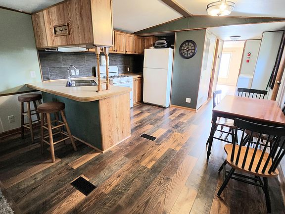 Park Meadows 2 bedroom, 2 full bath nicely remodeled single wide home on a easy access corner lot just inside the park. The seller just put in new floors through out, freshly painted each room, replaced the water heater, and added some new furniture including a gas log fireplace in the living room that stays with the trailer. The sale includes kitchen appliances, washer and dryer and nice shed off the front porch. The rubber roof was recently sealed and he had the vents and roof inspected and cleared. Schedule your showing today before this home is sold. Lot rent is $500 + water and sewer. Must be patk approved.