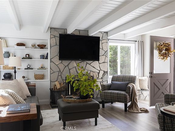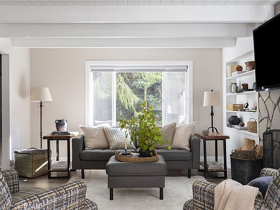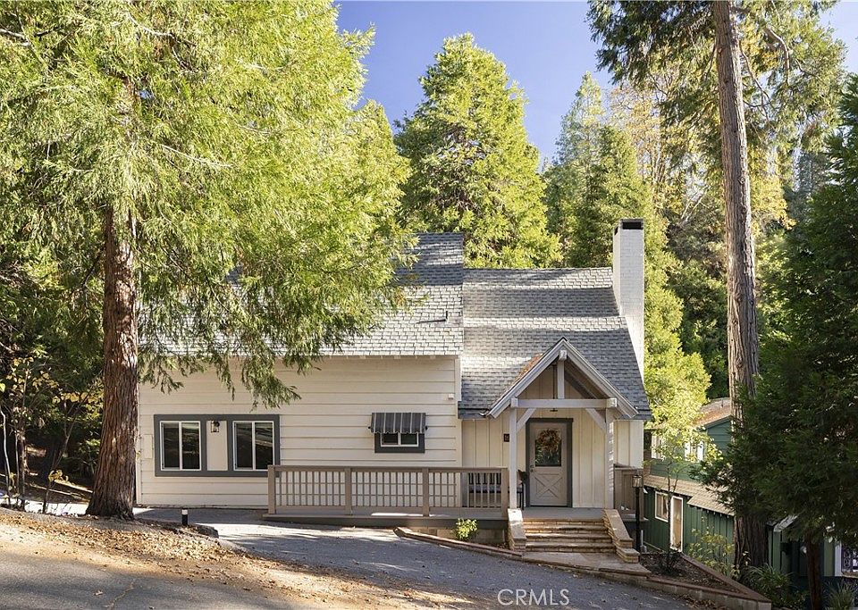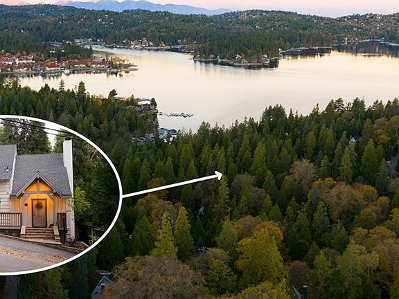 In the heart of the highly desired Palisades neighborhood, this storybook Lake Arrowhead cottage blends charm, style, and an unbeatable location. Featuring a level driveway with true level entry, the home provides rare, easy access for all seasons. Inside, the home feels warm and thoughtfully curated, with beamed ceilings, a classic stone fireplace, and large windows framing the surrounding forest. Light pours into the kitchen and dining areas, creating a bright, inviting setting for everyday living and entertaining. All three bedrooms are located upstairs, along with a bonus loft ideal for a kids’ corner, office space, or extra sleeping area. The outdoor space is a highlight, with the sale including an additional parcel that brings the total lot size to 9,047 square feet. Together, the combined lots create a spacious, woodsy setting with a gentle slope that makes for a great sled run in the winter, and a seasonal stream that runs between the parcels, adding to the natural mountain feel. Just a short walk to the lake and ALA trail and minutes from Lake Arrowhead Village, this location is one of the most coveted in town. Charming, accessible, beautifully updated, comes with lake rights, and set in one of Lake Arrowhead’s most iconic neighborhoods, this is mountain living in its purest form.