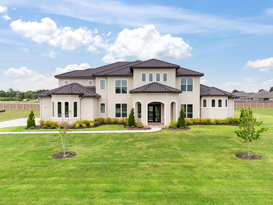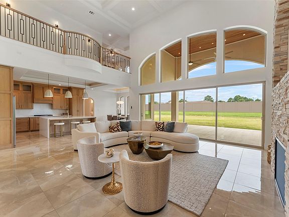 This stunning new construction situated in the gated Mia Lago Estates on a spacious 1-acre lot with no rear neighbors. Neighborhood privacy wall just broke ground and will be installed at the back of this property. This home offers privacy & serenity just minutes from Lake Conroe. Thoughtfully designed, this residence offers 2 bedrooms down & 3 up all with their own ensuites. The open-concept layout is illuminated by expansive windows and soaring crafted ceilings, with exquisite details throughout. The owner's en-suite captivates with Calacatta Laza Marble, while the chef’s kitchen boasts white oak custom cabinetry, quartz waterfall counters, hidden chef's pantry, and Frigidaire Professional appliances. Entertaining is effortless with window sliders to blend indoor and outdoor living seamlessly. 2 staircases, outdoor kitchen, game room, and media room add to the appeal. Enjoy included Walden Golf Club membership. Additional acre for sale next door for $200k.