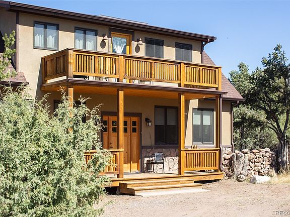 Creek Lot! Motivated Seller! This must-see dream home awaits in the quiet hidden town of Crestone. A unique tri-level beauty, this house offers diversity for living arrangements, offering separation and privacy for working couples, a family or visiting guests. Enter through an impressive, custom front door to the first level, where you are immediately welcomed to a stunning open concept Great Room with a handsome, modern kitchen that presents functionality as well as views of the Sangre De Cristo mountains. Hardwood floors grace the living room/dining room with a custom propane fireplace. The first level of the the living area has a lovely half-bath and a small bedroom/study with W/D tucked away in the closet. Completing the first level are three porches: one, a screened-in porch for mosquito-free, summertime living; second, a large, impressive, front porch at the entrance with spectacular views of the Sangres; and third, the NE porch, accessed via double French doors, opens onto a large deck revealing a stone-walled garden area with a gate to access the path to the woods and a year round creek. The 2nd level brings you to the massive, primary bedroom, with gorgeous wood floors, 3 huge closets, and then… enter the ensuite, master bath with double sinks, windows facing the mountains and a separate soaking tube and walk-in shower. The 3rd level is a unique wing of the house with a separate living room, 2 large bedrooms with good-sized closets and a large, full bathroom. In the living area, a French door leads to a 4th, large balcony facing the Sangres. Situated off of one of the few paved neighborhood roads (No Dust!) and is less than a mile to town, making it an easy walk if so inclined. From the kitchen is access to an oversized, attached 1-car garage, as well as a 700sf basement that has been Radon mitigated by a State Certified company. Short Term owner carry options available. Come find your mountain home bliss in Crestone! Check out the virtual tour!
