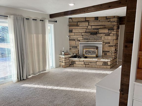 This home features a functional layout, and multiple living spaces ideal for larger households or anyone needing extra room. The large downstairs family room provides the perfect spot for a media area, game room, or second living space. Upstairs, enjoy great natural light and a cozy living area with a beautiful stone fireplace and rustic wood beam accents that add character and warmth. Step outside to a big backyard with plenty of space for entertaining, play, or relaxing. A home with this much space and versatility is hard to find perfect for comfortable living and room to grow.