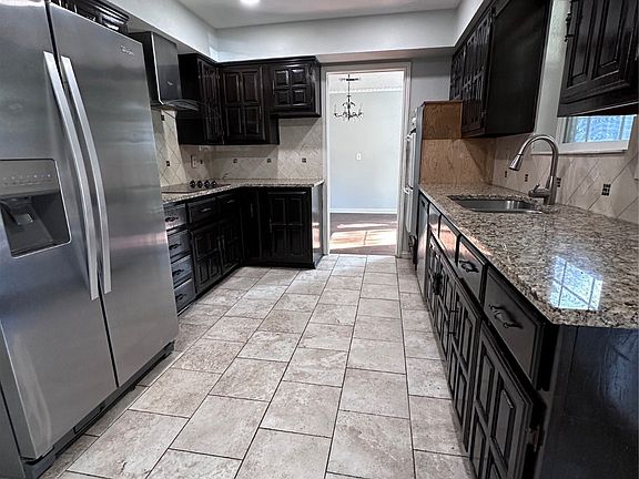 Glass top stoveLarge backyardLots of cabinetsTiled backsplashFour bedroomsWood like tile flooringGranite countertops