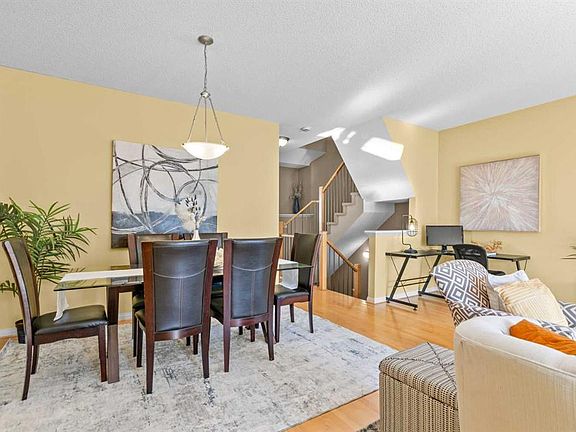 OPEN HOUSE SAT OCT 4 & SUN OCT 5 2PM - 4PM. Nestled in the highly sought-after Northwest Calgary community of Hamptons, this stunning end-unit townhouse is a rare blend of serene living and everyday convenience—perfect for families, professionals, or anyone craving space, light, and connection to nature. As an end unit, it boasts a prized feature: direct backing onto a sprawling, open green space, offering unobstructed views and a peaceful backdrop that feels worlds away from the bustle. Inside, the home is bathed in natural light, courtesy of abundant windows that flood every room with warmth from dawn to dusk. Step through the front door, where a grand foyer sets the tone for the spaciousness beyond. The main living area welcomes you with a seamless flow between the bright living room and elegant dining space—ideal for hosting gatherings or casual family moments—plus a cleverly integrated corner workstation, blending productivity with home comfort. Sliding glass doors from the living area lead to a private patio, your personal outdoor retreat for barbecues, morning coffee, or simply soaking in the quiet of the adjacent green space. A gas-lit fireplace anchors the living room, casting a cozy glow on cold winter evenings and turning the space into a heartwarming hub for family and guests. This level also features a thoughtfully designed kitchen, complete with a breakfast nook and an inviting eating bar—perfect for quick meals or chatting with loved ones while cooking. Rounding out this floor is a convenient 2-piece powder room combined with the laundry room, merging functionality with ease. Upstairs, the layout prioritizes privacy and flexibility. Three generous bedrooms await, including a sprawling master suite with its own ensuite bathroom—offering a tranquil escape to unwind. The remaining two bedrooms are equally spacious, with room to grow: they function beautifully as guest rooms, kids’ bedrooms, or can easily transition into a private home office or study, adapting to your lifestyle. A well-appointed main family bath serves these secondary bedrooms, ensuring convenience for all. Finally , there is also a front drive tandem 2 car garage with a private driveway for your everyday convenience. Beyond the home, the Hamptons community elevates daily living. Enjoy quiet, peaceful streets paired with unbeatable convenience—shopping, cafes, and eateries are just moments away, eliminating the hassle of long errands. Families will appreciate the excellent school catchment covering all ages, while the area’s green spaces and pathways invite weekend walks or bike rides. This townhouse isn’t just a home—it’s a lifestyle: where nature meets convenience, space meets comfort, and every detail is designed to make everyday living feel special.