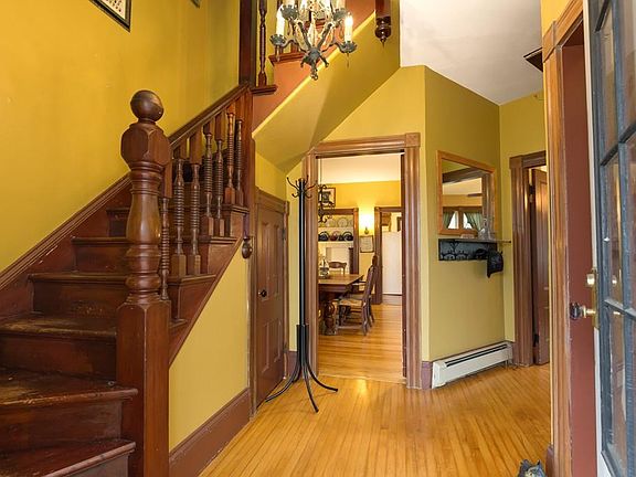 Main Street living in a small town - enjoy parades from the front yard and enjoy a sense of community with every passer by. Head out back to enjoy the HUGE backyard fenced in for privacy and a private enjoyment. This gorgeous Victorian has had extensive updating including PLUMBING, ELECTRICAL, ROOFING, and more. Homes like this are not built very much anymore and this one needs nothing. Custom built ins all around, beautiful kitchen and fireplaced dining room. Huge living and family rooms that separate for privacy by way of gorgeous pocket doors. All NEW WINDOWS keeps the efficiency we all desire with heating and cooling, not to mention how quiet it is inside. 4 bedrooms uniquely positioned on the second and third floors. Amazing balcony off the back of the second floor to enjoy a morning coffee or just relax and look over your back yard. As you enter from the driveway, you may be tempted to just sit right down in the sunroom and enjoy the woodstove and views as well. Amazing home!!!