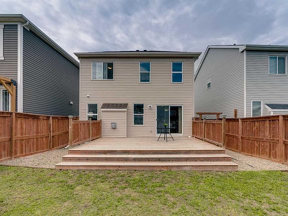 Public Open House OCT 5TH 12:00 pm-2:00pm. Wow! Under $550k! *Watch the Video* Home Sweet Home! A fantastic opportunity to own a very spacious FRONT ATTACHED GARAGE DETACHED home in the family oriented community of South Windsong, Airdrie. Nestled on a quiet street, this gorgeous looking home offers a layout that will leave you at a WOW! 1566 SQFT | 2015 Built | | 3 Big Bedrooms| Brand New Carpet | Open Floor Plan | Huge South Backyard | Oversized Deck | Spa-Like Ensuite | Tons of Windows | Excellent Location. As you arrive you this home, you'll notice the attached car garage and the driveway, along with a front porch - perfect for your morning coffee/tea. As you enter you'll notice the generous foyer & the beautiful laminate flooring that leads you into the open concept main floor. The spacious chef's kitchen with tons of cabinets space, centre island, elegant backsplash, and new pot lights. Adjacent to the kitchen is the spacious dining area which easily fits a 6-8 seater. The sun-kissed living room offers great space for entertainment and a gas fire place to keep you warm and cozy in the winters. A conveniently tucked-away half bathroom sits on one side of the main level, with the garage entrance right beside it—offering easy access without having to walk through the kitchen. As you head upstairs, you'll appreciate the extra windows along the staircase, flooding the space with natural light. You'll be left amazed with 3 SPACIOUS BEDROOMS! The master bedroom with south exposure has a lot of space to fit in your king bed along with your add ons. The luxurious ensuite - featuring a tub, and a glass enclosed shower with floor to ceiling backsplash, dual sinks, and extra storage space. The other bedroom fits in a queen bed and has its own walk-in closet. The 3rd bedroom can easily be used as a kids bedroom or a den to work from home. The conveniently located second bathroom completes this level. Unfinished basement offering you a blank canvas for you to finish the space in the future. ADD ON: furnace and duct cleaning done in August 2025! Ideal location and minutes away from Windsong Heights School, shopping complex, parks, playgrounds, just a short walk to the future school site on Osborne Drive, future YMCA, easy access through the 40th Avenue Exit on Deerfoot, and just 20 minutes away from Calgary. Shows 10/10.