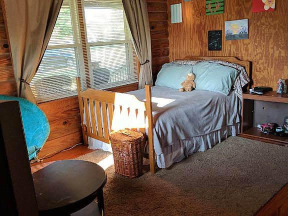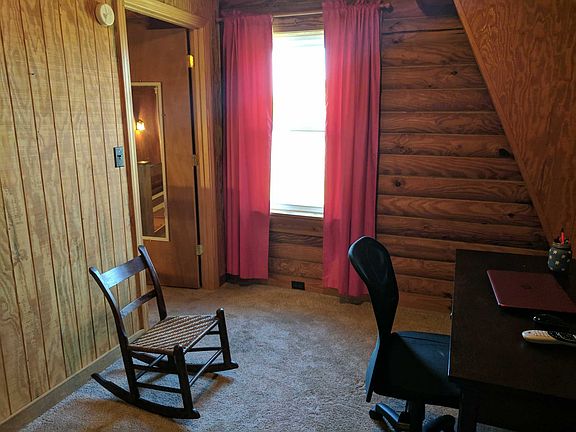 4 bedroom 2 bath log home with a rocking chair front porch and large deck out back on 1.7 acres located outside Rustburg.