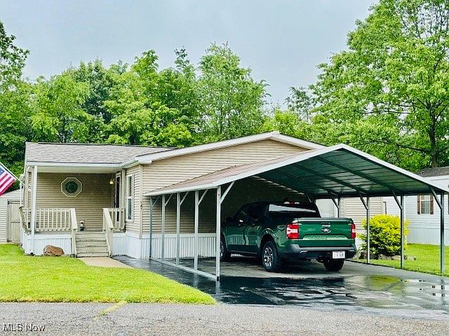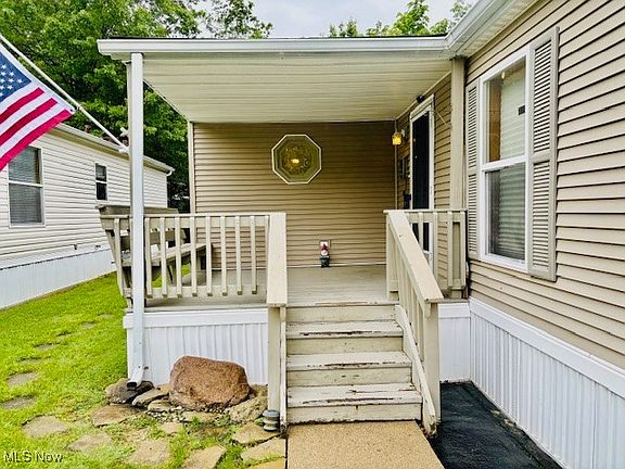 Amazing opportunity to own this really nice well cared for 3-bedroom mobile home located in Howland Village Park. Situated on a quiet cul-de-sac in the very back of park. Enjoy the rippling stream in your back yard while sitting on your amazing private well-built deck. Shed has electricity. Gas grill, firepit and sand box all stay. Open eat in kitchen with breakfast bar. 2 full baths. Living room and also nice family room with gas fireplace. Nice laundry room with plenty of cabinet space. All appliances stay and a 1 Year Home Warranty is added for an additional bonus! Roof new in 2023. New dishwasher. Schedule a tour today to enjoy easy living!
