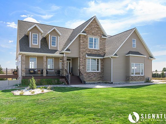 Welcome to your oasis on the Wyoming prairie — a breathtaking 10.21-acre estate where luxury meets country living with over 5400 SF of crafted high-end finishes. From the moment you arrive, you're greeted by meticulous landscaping, mature trees, & tranquility that only wide-open space can provide. Whether you're entertaining or simply enjoying the peace of your surroundings, the fully fenced backyard, sprawling Trex deck, expansive concrete patio, and custom stone fire pit create a picture-perfect outdoor retreat. The sprinkler system ensures your personal prairie oasis stays vibrant and lush all season long. Step inside to grand ceilings, a sweeping staircase, & rich hardwood flooring that flows through elegant living spaces. The heart of the home is the stunning great room, where a towering stone fireplace becomes the focal point of gatherings and cozy nights in. The open-concept design includes a dedicated dining space and a seamless connection to the kitchen & entertaining areas. Your custom primary suite is a true retreat, featuring a spa-inspired bathroom with an oversized walk-in shower, soaking tub, and a dream-worthy walk-in closet. Additional home features include large, luxurious bedrooms, a dedicated office, and a spacious basement with a full kitchenette ideal for hosting, relaxing, or extended stays. Outside, the property is fully equipped for both recreation and functionality. Perimeter fencing and a brand-new livestock shelter make this estate ideal for animals, while the 28x54 fully finished and heated shop, complete with 12x58 lean-to, offers endless potential for hobbies, storage, or business needs. This extraordinary property combines luxury, privacy, and practicality a true opportunity to live in comfort and elegance. For more information call/text Laura Pinkerton with Signature Real Estate Group at 307-670-1180