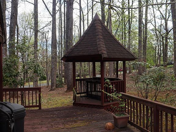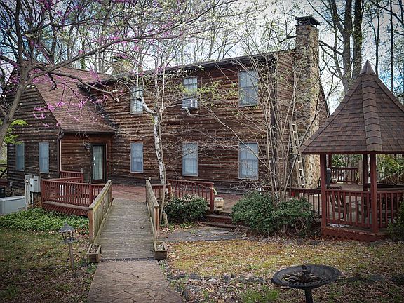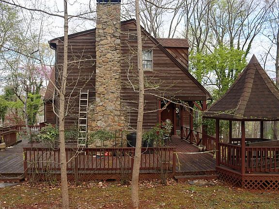 Welcome to this beautiful 4 bedroom 2 full bathroom home nestled on 1.022 acres of land with a fully paved wrap-around driveway. You will enjoy your morning coffee or tea in not only 1, but 2 gazebos located on the wrap around deck, there are 2 roomy porches to enjoy fresh air! As you enter through the back door, you'll be greeted with vaulted ceilings in the living room and a cozy stone fireplace. The open concept will lead you to the eat in kitchen with a large bay window. Down the hall, you'll find a spacious laundry room, washer and dryer to convey. At the end of the hall, you'll find the master suite with an en-suite master bathroom with double vanity. Upstairs are three additional bedrooms and a full bathroom, Ample storage/closet space. HVAC unit was installed in 2016. Large outbuilding with attic space. This is such a charming place to call home, don't miss this to call it yours!