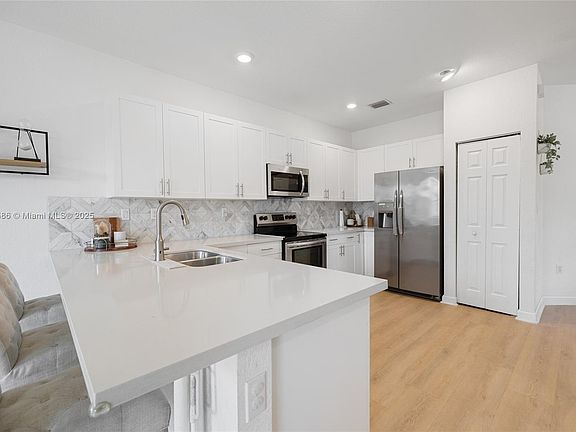Corner Unit in Tuscan Pines! This 4-bedroom, 2.5-bath Lennar-built townhouse offers a perfect blend of style and convenience. The open-concept kitchen and living area feature stainless steel appliances, white marble countertops, and an elegant backsplash. Tasteful wood-look vinyl floors flow throughout, complemented by updated bathroom vanities. The primary suite includes dual sinks and a glass-enclosed shower. EV charger installed for easy access to a charging station. Enjoy a private backyard space, one-car garage, and community pool. Ideally located between US-27 and I-75 for easy commuting.