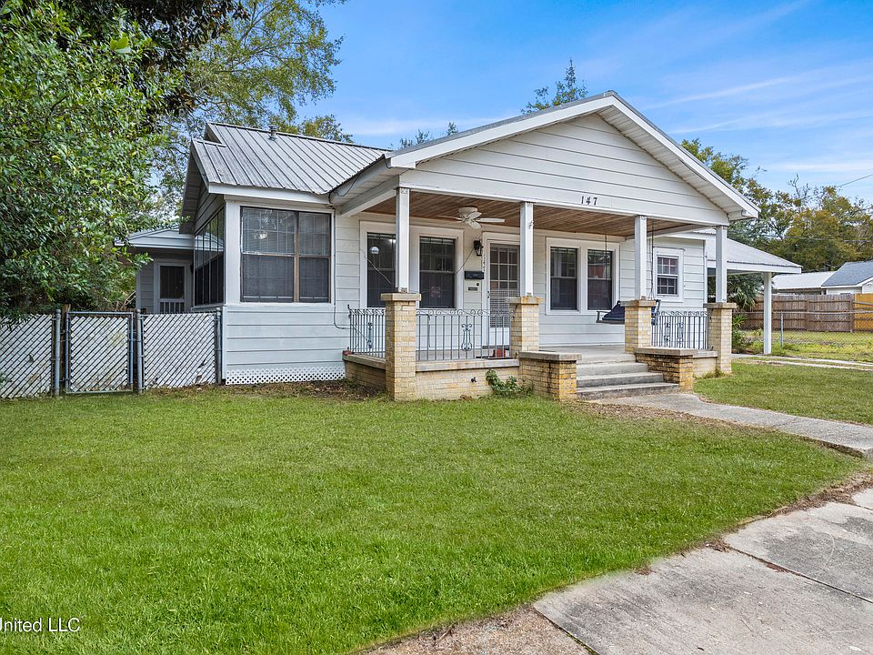 Endless opportunities await you in this charming beach cottage just 1 block to the sandy beaches and less than 5 minutes to the casino's and Keesler Air Force Base. This home features some original hardwood flooring, galley style kitchen , office nook and a beautiful spacious front porch. Carport, detached shed and fenced yard. Come add your personal touches and make this your next beach bungalow! Schedule your showing today. (note: chandelier in Living room does not stay)