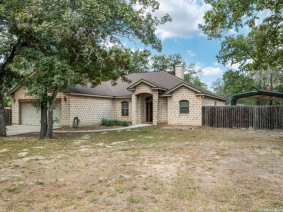 **OPEN HOUSE - SUNDAY, OCTOBER 20TH, 2PM TO 5 PM** It's five o' clock all the time at this property! Enjoy all the comfort of your custom beach entrance, in-ground Keith Zars pool, privacy fencing is cross fenced on this oversized lot surrounded by mature oak trees in a cozy neighborhood nestled in La Vernia Texas. This well-maintained, 3 bedroom, 2 bathroom brick home is sure to serve as the HUB where friends and family gather for all entertaining, relaxing and holiday celebrating with room to spare. Gazebo, large workshop/shed/man-cave, covered parking/carport, rainwater catch system and kitchen fridge convey with accepted offer. Kitchen is spacious and adorned with granite counter-tops and solid wood cabinets for beauty, durability and accessibility. Bedrooms and bathrooms have been designed to have ample storage and space for all of your decorating and storage needs. All interior walls have fresh coat of paint which make this home turn key in a snap. Schedule your showing today and say YES TO THIS ADDRESS!
