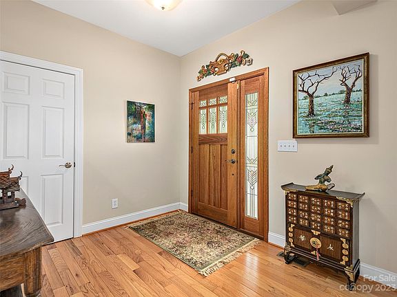 Private 25+ acre estate with year-round mountain views. This one-story home is loaded with features. The spacious kitchen has quartzite and leathered granite countertops, an island with storage, separate breakfast bar, double ovens, 6 burner range, beautiful backsplash and walk-in pantry. The primary ensuite is spacious, has 2 walk-in closets and direct access to the backyard outdoor living area. There is a wood burning fireplace plus beautiful wood floors throughout. Geothermal HVAC. 3 separate covered porches. Fenced backyard and garden. Fruit trees and berry bushes. Your own private trails, plus 14 miles of private community trails directly accessible from the property. The property is bordered by a creek with a small waterfall. And there’s an attached 495 square foot 2 room studio with half bath. Located in the Lake Adger Community with lake access for boating, paddling, fishing and swimming. Please also check out the video virtual tour and come to see this one soon!