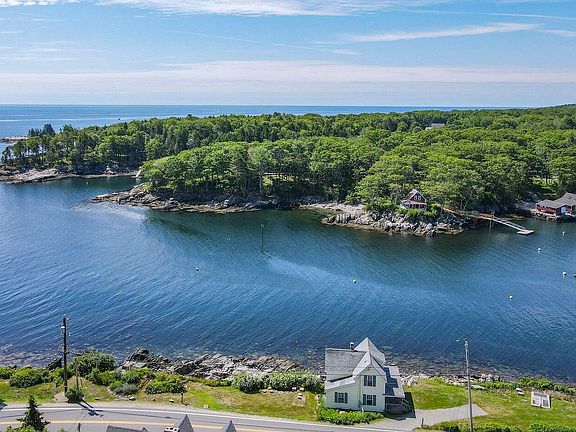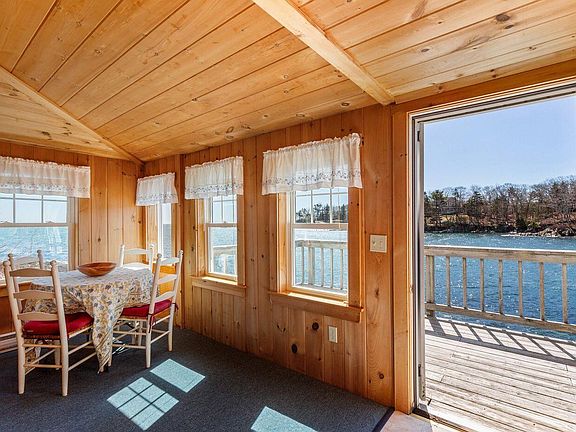 In an iconic location perched on the rocky shores of New Harbor, the McFarland Cottage is a quintessential waterfront property with .10± acres and outstanding views looking back on New Harbor and out to Muscongus Bay. The house is a charming, seasonal cottage with a wraparound deck and two bedrooms. The historic home's appealing character is reminiscent of a classic summer cottage with wood-paneled walls and ceiling throughout and water views from nearly every room promote the continuously changing scenery and the soothing sounds of the water. The property has a small lawn, 91± feet of frontage on the harbor, a deep-water mooring, and it is possible to build a deep-water dock.