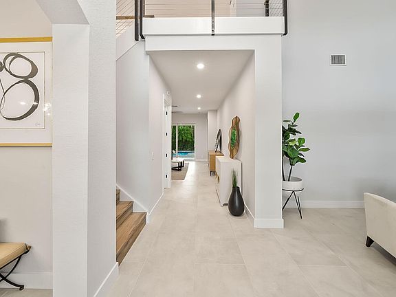 Nestled in a serene lake view setting, this fully renovated masterpiece showcases a host of exquisite upgrades. The gourmet kitchen is a culinary dream, featuring a large quartz waterfall island that serves as the heart of the home. The bathrooms evoke a sense of tranquility with their spa-like design, and decorative tile accent walls add a touch of artistry throughout the space. Impressive 24x48 porcelain tile floors flow seamlessly from room to room, while modern interior doors, chic light fixtures, and elegant plumbing fixtures elevate the home's aesthetic. The staircase, adorned with sleek and sophisticated railings, is a statement of its own.