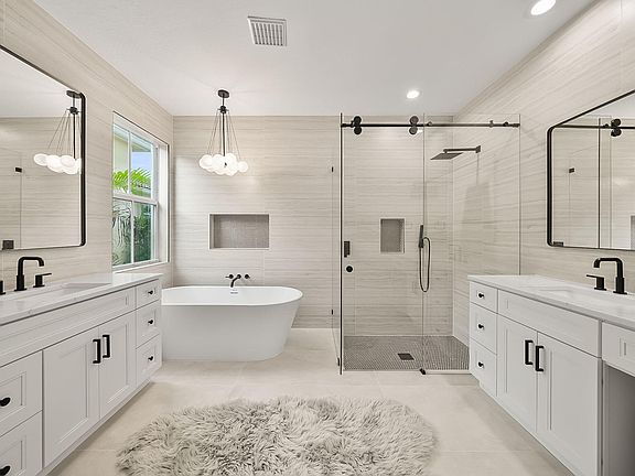 This exceptional home offers 4 bedrooms, 3.5 bathrooms, 2 lofts, a mudroom, sparkling pool, and a 3-car garage. Nestled by a serene lake, it has been fully renovated with luxury finishes. The gourmet kitchen features a large quartz waterfall island, and spa-like bathrooms with decorative tile accents. 24x48 porcelain tile floors, modern doors, chic light fixtures, and elegant plumbing fixtures enhance the space. The expansive lofts provide flexible living options. Outdoors, enjoy the revitalized pool with marble pool deck, pet-friendly turf, and stunning lake views. Impact windows and new AC units ensure comfort and security. Located in the sought-after Mirabella neighborhood, this home blends modern luxury with timeless beauty. Prepare to be captivated by this exceptional home that defines luxury and elegance. With 4 spacious bedrooms, 3.5 beautifully appointed bathrooms, 2 expansive lofts, a convenient mudroom, a sparkling pool, and a 3-car garage, this property offers unparalleled comfort and style.