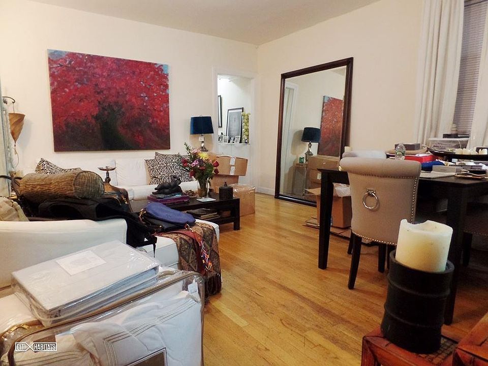Spacious one bedroom in boutique prewar elevator building in the heart of the West 80's. Huge living room. King-sized bedroom. Separate windowed kitchen and large bath. Ample closet space. One block from 1, B and C subway stops. Sorry, no dogs.