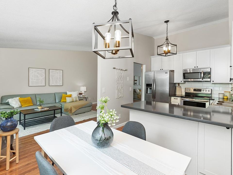 2-bedroom townhome (with 3rd non-conforming bedroom) in the Village at Eagle Lake! Spacious open-concept layout with beautifully remodeled kitchen, featuring brand new cabinets, backsplash, Quartz countertops, and stainless steel appliances. Eat-in kitchen and dining space, great for everyday meals and entertaining. The living area flows seamlessly to your private deck—ideal for relaxing and enjoying the outdoors. Located in a highly desirable neighborhood, you'll have convenient access to local shopping, dining, parks, and schools. Fabulous HOA with amazing amenities make this place very special: in-ground pool, tennis/pickleball court, basketball court, hiking and walking trails and access to Eagle Lake.