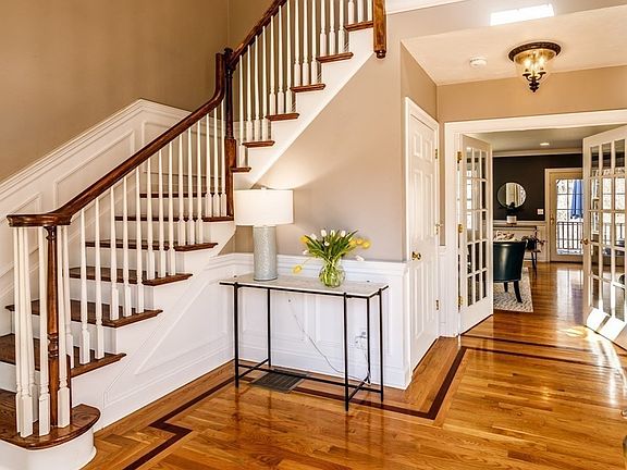 OH CANCELED for Sun. May 7th... This custom, expanded, Cape home sits on 2.4 private acres bordering conservation land & features many elegant details. Enter into a grand foyer boasting custom wainscoting, gleaming hardwood flooring w/mahogany inlay, stunning staircase leading to 2nd level, & French doors into the living room w/Harman pellet insert, recessed lighting, & beautiful molding. The eat-in kitchen includes center island, & high-end SS appliances. The bright, window-packed dining room has a 2nd fireplace & access to the private deck & backyard. The 1st-floor office w/full bath can work as a guest room. The main bedroom boasts large bath with w/double vanity, jacuzzi tub, tiled shower, private balcony, & many closets. The 2nd level has 3 additional bedrooms, Jack-n-Jill full bath, & large closets. The finished walk-out lower level includes 3 additional bonus rooms. Freshly painted interior, new lighting fixtures throughout, new EV charger in garage, & Nest thermostat.