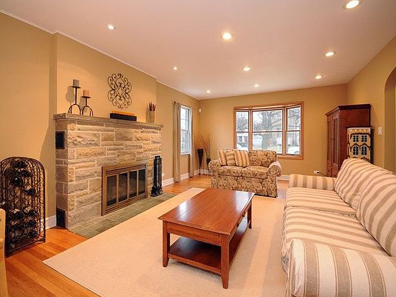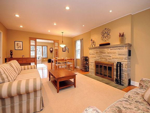 This charming 3 BR home sits on an extra wide lot! Home shows like a model, with it's beautiful decor! Spacious, updated kit with SS appliances, cabinetry and breakfast bar. Living Room/DR with wood-burning fireplace. Bright FR w/lots of windows overlooking the large fenced yard! Hardwd floors throughout & ceramic flrs in kitchen & bths. New roof, gutters, siding. Close to park, schools, town & train!!