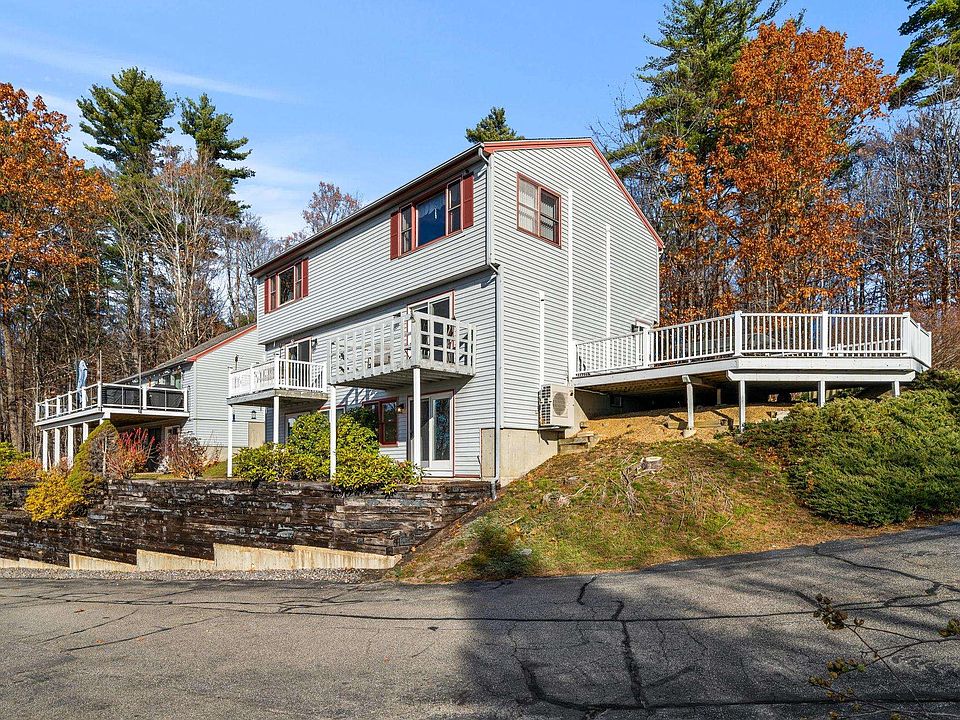 Welcome to Paugus Bay View, an intimate lakeside association with only seven units. This charming 2+ bedroom Lake Winnipesaukee townhouse offers the perfect blend of comfort, convenience, and year round enjoyment. Take in stunning Paugus Bay sunsets from the oversized deck or relax on your private balcony that extends your living space outdoors. Step inside from your private deck and you are greeted by a bright, open concept kitchen and living area adorned with hardwood floors. The kitchen features a spacious breakfast bar and ample cabinetry, creating an ideal setting for both cooking and gathering. The second floor offers two generous bedrooms with hardwood floors and a full bathroom. The finished walkout lower level adds valuable living space with a laundry area and a three quarter bath. Additional features include central AC, a propane fireplace in the lower level, Trex decking on the main deck, two dedicated parking spaces, and access to a community dock, day dock and boat moorings available by a short waitlist. A shared grassy area provides extra room to relax and enjoy the outdoors. This year round townhouse is perfectly located just minutes from Weirs Beach, Gunstock Mountain, Bank of NH Concert Pavilion, Golf Courses (including Laconia Country Club) ,restaurants, supermarkets, marinas, and retail shops. Property is sold furnished, making it easy to settle right in and start enjoying lake life.