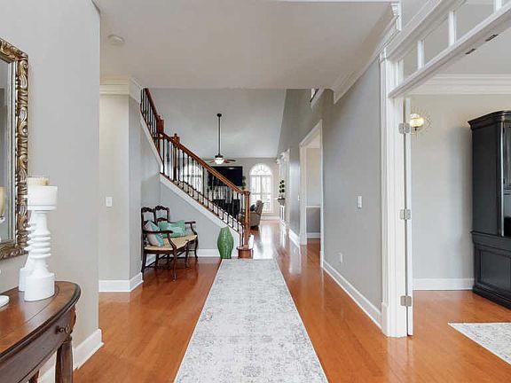 This 4 Bedroom, 4 Bathroom home features TWO offices, a bonus room, and 2 story living. The fenced private backyard will be your oasis at the end of the day while you relax by the fire pit and listen to the soothing water feature. It was built by Turnberry Homes and has only had one owner. ONLY TWO STEPS IN FROM GARAGE. Lots of upgrades including; hardwoods, granite, stainless steel, lots of wood trim & TWO master walk-in closets.