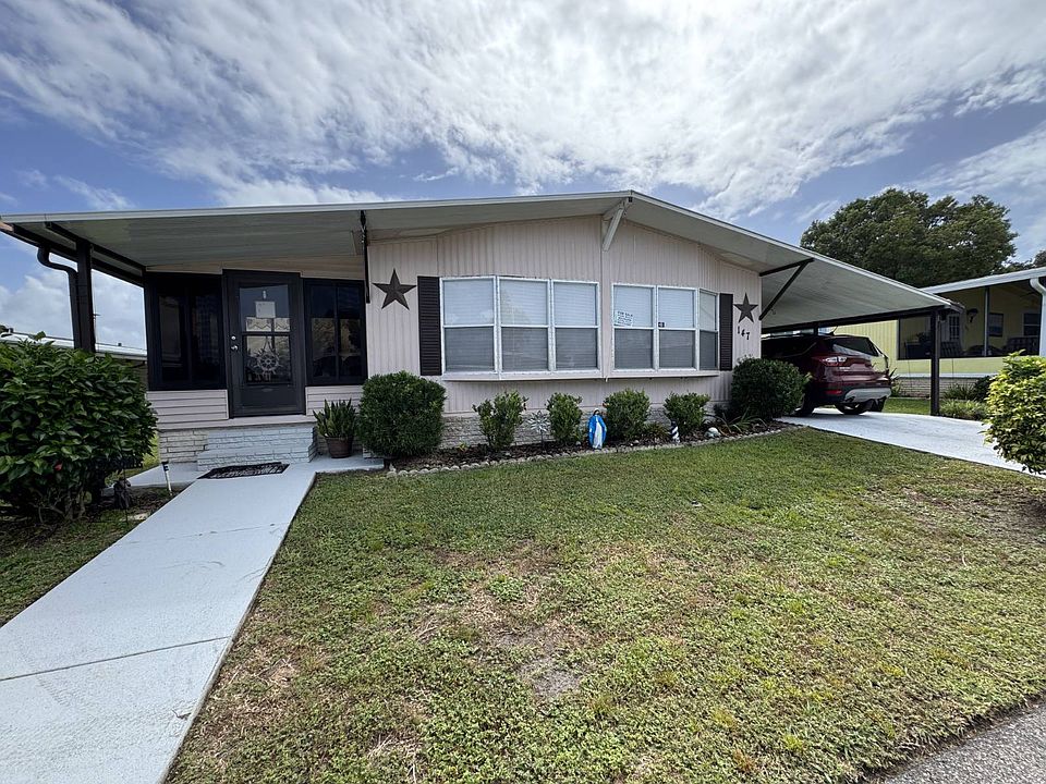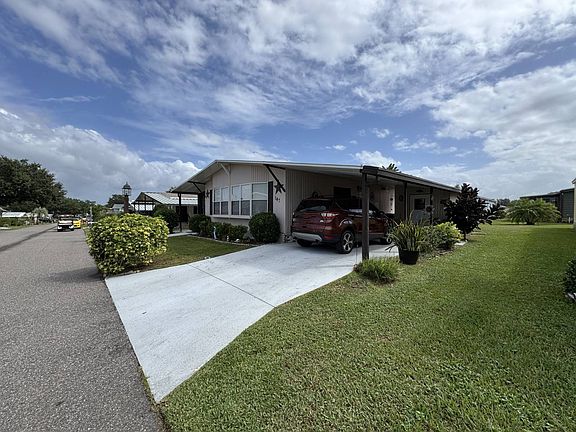 This spacious 2-bedroom / 2-bath, 1200+sf home is waiting for you in the 55+ gated community of Swiss Village! It comes fully furnished with everything you'll need to start enjoy the Florida lifestyle. It is a true turnkey opportunity! The fully enclosed Florida room, offers even more living space to entertain family/friends, enjoy a quiet cup of coffee, work on crafts, or read a good book. The shed houses the washer and dryer and is located just outside the door. The galley kitchen provides plenty of room for cooking with ample counter space, cabinets, and a pantry. This home has two separate dining areas inside plus additional seating in the Florida room. Another key feature of this home are the newer windows across the front of the home. There is vinyl plank flooring throughout the main living areas. There is also a sizeable backyard, making this home perfect for pet owners. The newer roof was added in 2022. The HVAC is also newer and comes with a 3-year warranty. The compressor was just replaced in 2025. Lot rent includes the garbage pickup and is very reasonable at about $698 for 2026. Swiss Village is known for its "small town" atmosphere where neighbors look out for one another. It is perfectly located on Lake Henry in Central Florida, away from the touristy areas, but within driving distance to theme parks, beaches on both coasts, fishing, shopping, etc. It's the perfect spot to settle and enjoy everything Florida has to offer. There is a large clubhouse, a card room, library, two pools (heated/non-heated), exercise room, two hot tubs, shuffleboard, mini golf, and a community dock and boat landing on Lake Henry. This is a very active community with dances, entertainment, bingo, cards, church services, golf cart parades, boating, fishing, etc. Call one of the listing agents today for an in-person or virtual tour. You'll be glad you did! NOTE: All listing information is deemed reliable but not guaranteed and should be independently verified through personal inspection by appropriate professionals. Our company does not and cannot guarantee or warrant the accuracy of this information or the condition of this property. Measurements are approximate. The buyer assumes full responsibility for obtaining all current rates of lot rent, fees, and pass-on costs. Additionally, the buyer is responsible for obtaining all rules, regulations, pet policies, etc., associated with the community, park, or home from the community/park manager. Our company is not responsible for quoting said fees or policies. Financing is available through 3rd party lenders. The sales price does not include tax, dealer fees, or administrative fees. Please contact the sales agent for additional information.